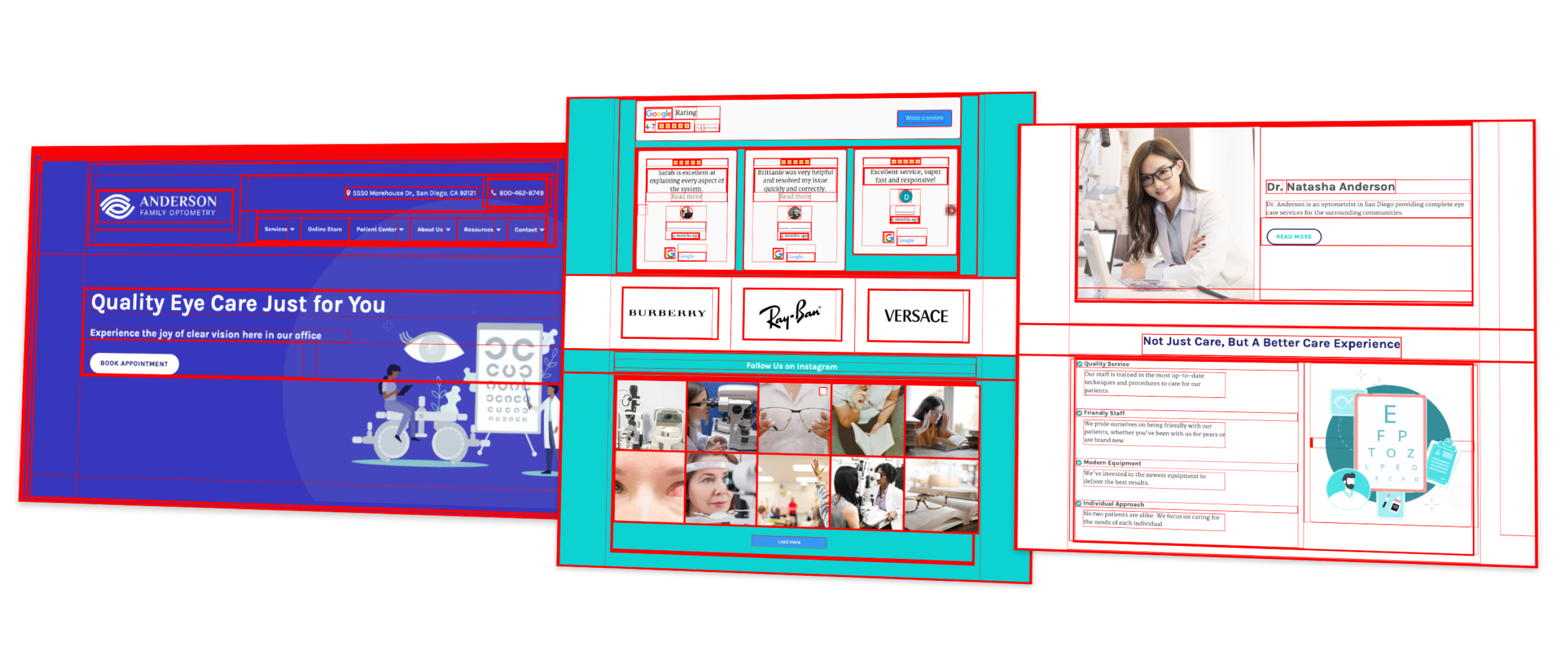 In the provided illustration, I applied various CSS values to emphasize the framework of each component, employing a red border. This approach facilitated the identification of areas requiring enhancement, such as element overlap or undesired spacing discrepancies. The highlighted purple segments serve as clear instances of inconsistent margins. This comprehensive audit unveiled instances of undefined CSS attributes and the absence of a preferred spacing standard, such as the widely recognized 8-point spacing system (multiples of 8px).